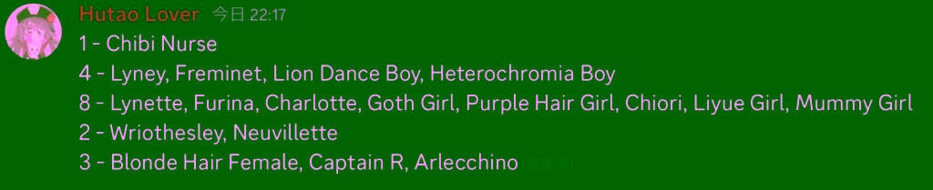 Tak hanya itu, sang leaker juga menjabarkan siapa saja karakter yang akan hadir selama arc Fontaine ini berlangsung. Jika hal ini benar, maka nantinya akan ada 1 chibi, 4 medium laki-laki, 8 medium perempuan, 2 tall man, dan 2 tall woman (jika ditambah Arlecchino, maka jadi 3).