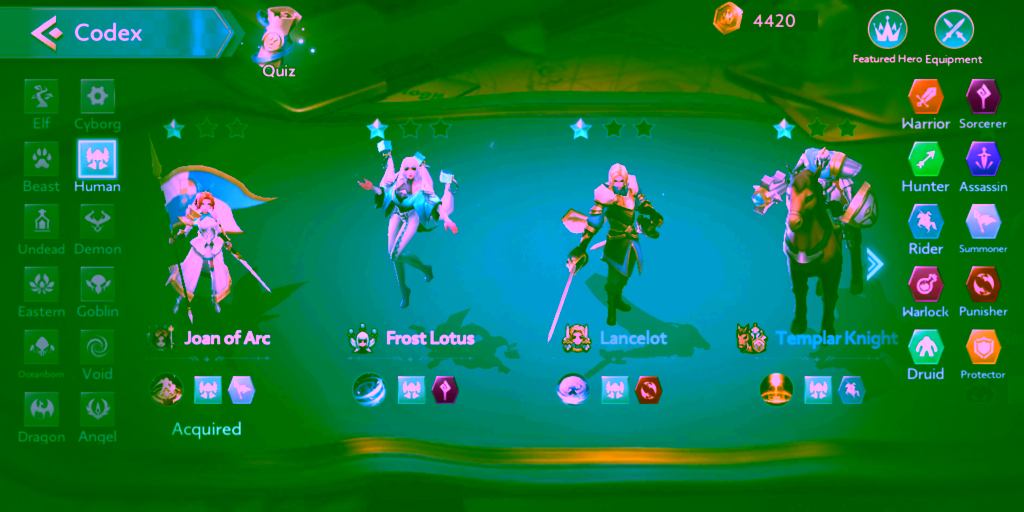 META pada season 5 kali ini didominasi oleh combo Human. Hero yang termasuk kelas Human ini adalah Frost Lotus, Joan of Arc, Lancelot, General of War, Flamecaller, Templar Knight, dan Lightbringer Combo ini menjadi salah satu combo yang paling sering dipakai, terutama untuk tier diamond dan master. Kenapa combo ini META? Karena combo ini memberikan efek untuk mereset skill hero Human setelah menggunakan skill. Combo ini akan sangat efektif jika combo ini sudah mencapai 6 Human, dan akan sangat nyaman sekali dipakai di mid game hingga late game. Hero hero yang sering dipakai untuk mencapai combo 6 Human ini adalah Frost Lotus, Joan of Arc, Lancelot, General of War, Flame Caller, dan Lightbringer.Dengan combinasi ke enam hero ini pasukan kalian akan mendapatkan kekuatan menyerang dan bertahan yang stabil. General of War, Joan of Arc, dan Lancelot akan menjadi lini depan dengan skill stun General of War, Joan of Arc yang memanggil prajurit untuk mengalihkan perhatian, dan Lancelot yang akan bertahan dengan skillnya yang menambah absorb. Sedangkan sisanya yang sebagai lini belakang sebagai penyerang dan sekaligus didukung oleh combo sorcerer yang akan sangat mudah melibas musuh.