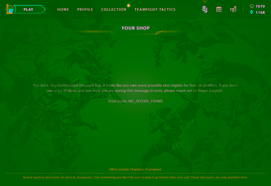 RIOT Games selaku developer game League of Legends selalu rutin memberikan diskon eksklusif kepada para pemain terhadap beberapa skin championsnya. Hal tersebut yang dimanfaatkan pemain tersebut untuk membeli semua skin yang ada didalam game. Lebih dari 5 tahun pemain tersebut menunggu diskon eksklusif dan membeli semua penawaran yang ada untuk menyempurnakan skinnya.