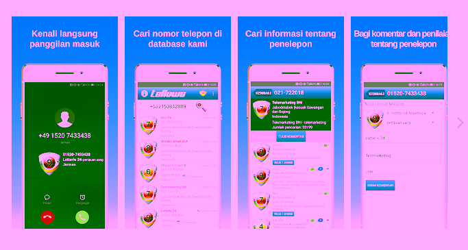 Masih sama seperti aplikasi lainya, aplikasi ini memungkinkanmu untuk melacak hingga melakukan pemblokiran terhadap nomor telepon yang tidak di kenal. Aplikasi ini akan menampilkan informasi berupa alamat, nama, foto, dan lain sebagainya secara spesifik.