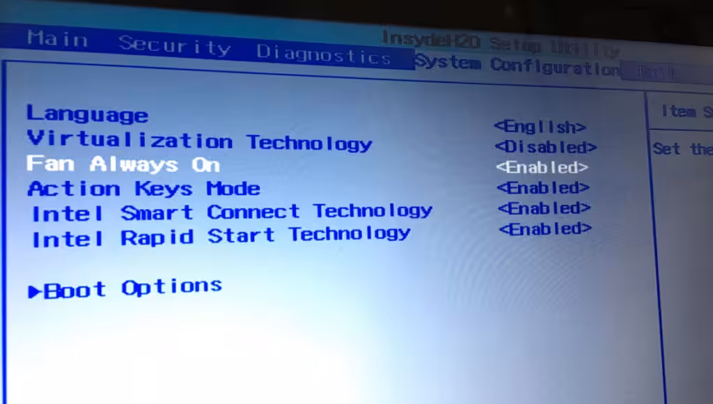 Pengaturan kipas pada laptop ini terletak di dalam BIOS, dan hanya bisa diakses ketika kita menyalakan laptop pertama kali. Beberapa tipe laptop menyediakan fitur Performance dan Silent, dan settingan tersebut tidak akan berubah secara otomatis. Bila tidak ada pengaturan tersebut, pastikan bahwa Fan Always On selalu dalam kondisi Enabled yah brott, biar laptop-mu tidak panas.