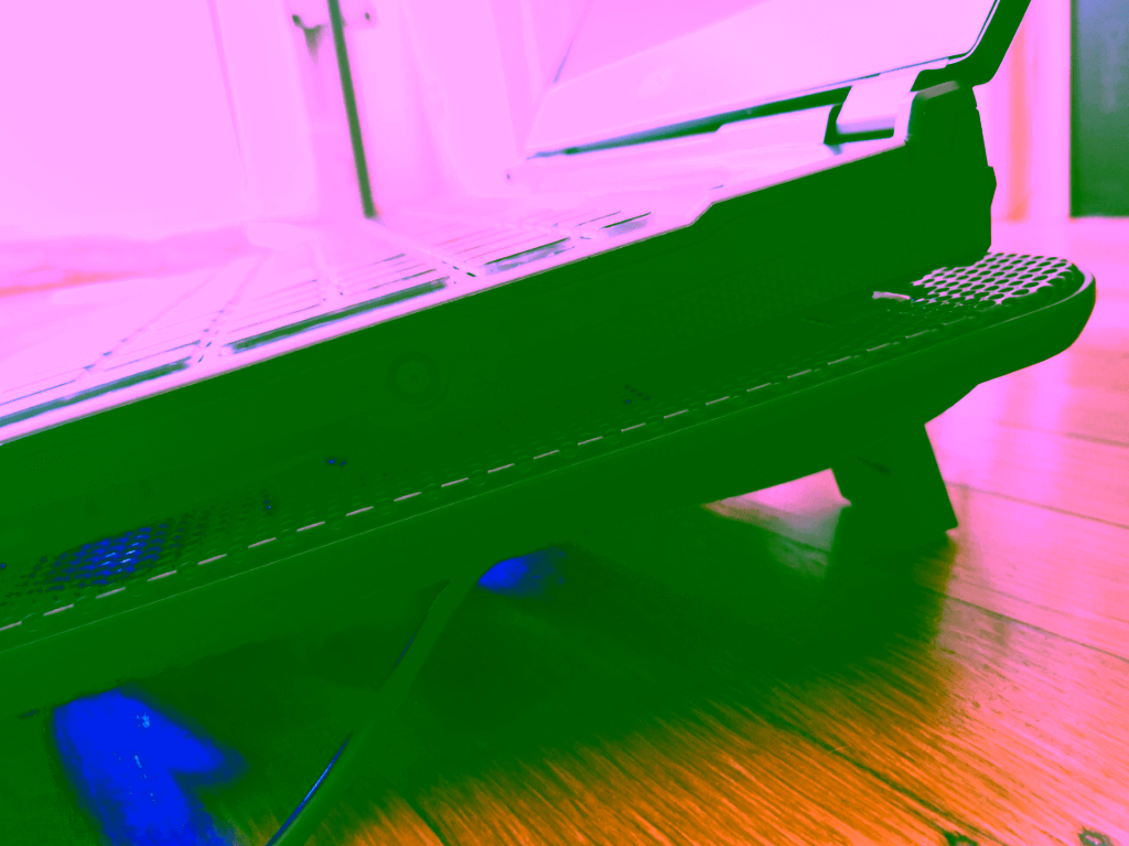 Pada umumnya, sirkulasi udara pada laptop mengambil udara dari bawah lalu membuangnya ke samping atau ke belakang laptop.