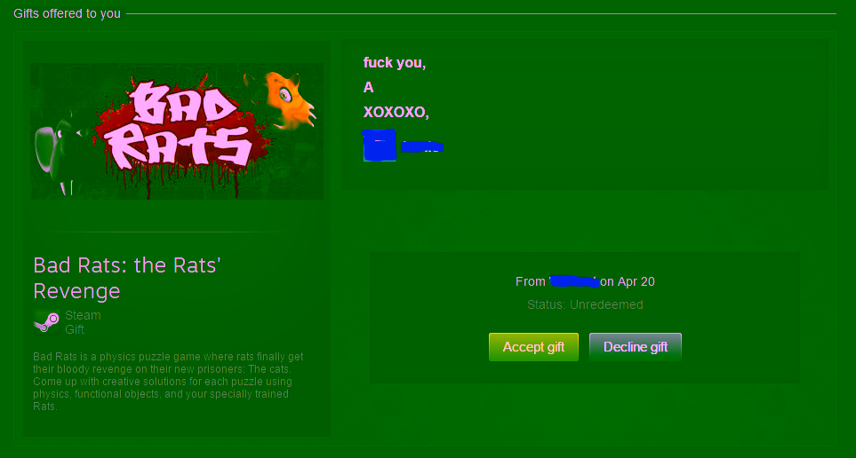 Siapapun mau game gratis, tapi hal serupa tak bisa dikatakan untuk Bad Rats atau game <$1 lainnya. Kamu tahu game tersebut dijual murah karena kualitasnya yang buruk, dan kamu tahu jika temanmu memberikannya kepadamu hanya sebagai lelucon semata.