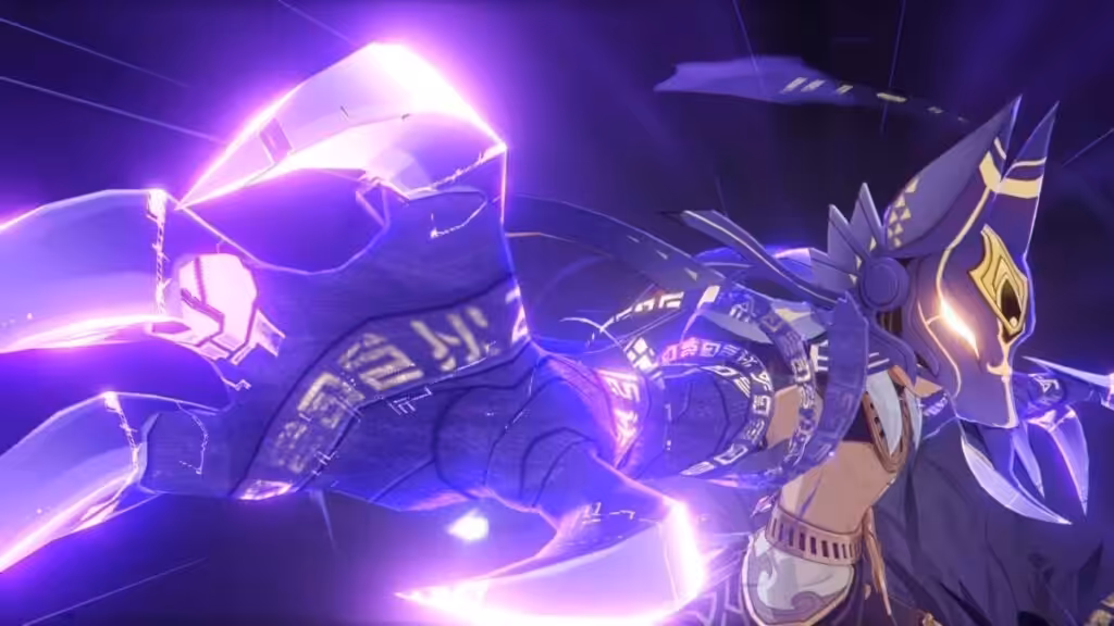 Kit Cyno ini berpusat pada burst-nya, yang membuat seluruh Normal Attack, Charged Attack, dan Plunging Attack menghasilkan Electro DMG sambil meningkatkan Elemental Mastery dan ketahanan interupsinya. Durasinya burst ini sendiri bertahan sekitar 10 sampai 18 detik yang mana efeknya bakal langsung hilang jika pemain swap dia ke karakter lain.