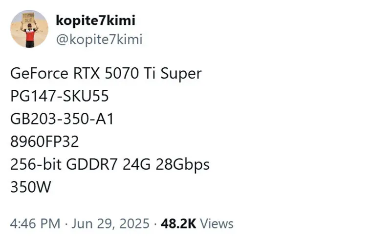 Setelah sekian lama, akhirnya leaker kondang Kopite7kimi mencuit informasi terbaru yang menyinggung kartu grafis anyar NVIDIA, RTX 5070 Ti SUPER. Lalui cuitannya, sang leaker membeberkan beberapa informasi dasar dari kartu grafis yang akan meletakkan posisinya di kelas mid-high.