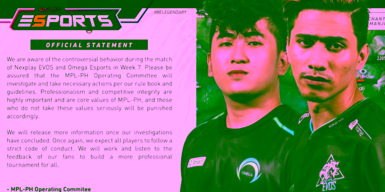 Hal ini dikarenakan permainan dari dua tim tersebut dianggap tidak menjunjung sportivitas. Selain itu, salah satu pemain dari Nexplay EVOS juga melakukan taunting “mencekik leher” yang juga melanggar peraturan.