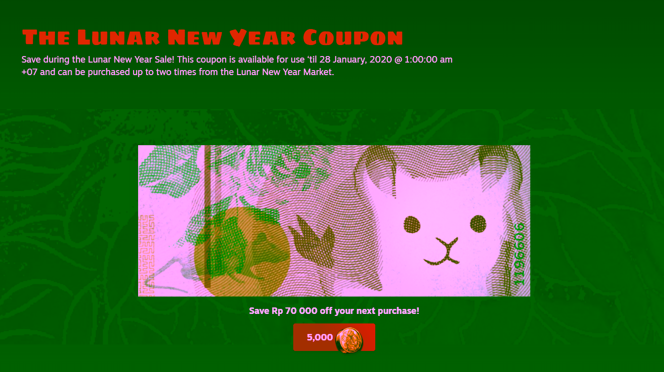 Selain Diskon, jangan lupa bila pihak Steam kini juga telah mengadakan semacam event mengumpulkan point ala Winter Sale kemarin. Hadir melalui format kejutan 4 jenis “angpau” yang 3 diantaranya masih dirahasiakan untuk hari esok, pada event pemberian angpau yang pertama, kamu masih tetap berpeluang untuk mendapatkan kupon diskon pengurangan harga sebanyak Rp 70.000 di event Lunar sale ini apabila kamu sudah berhasil mengumpulkan poin sebanyak 5000.