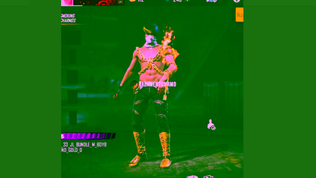 Sesuai dengan judul, Bundle Skin Free Fire x BTS ini akan buat karakter kalian gunakan rantai emas sebagai baju yang dikenakan. Tidak lupa dengan rambut ala ‘jamet’ dengan sedikit warna kuning di poninya. Terdapat Aura api di bahu saat kalian gunakan skin ini ya.