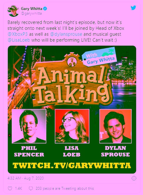 Dilansir dari Gamerant, bos Xbox bakal muncul di acara Animal Crossing. Bos dari Xbox Phil Spencer ikut dalam acara Animal Crossing: New Horrizons yang berjudul Animal Talking. Salah satu acara yang berkembang searah dengan perkembangan Animal Crossing. Acara ini sendiri telah mengundang banyak pembicara seperti, Brie Larson, Kevin Smith, Danny Trejo, dan banyak lagi.