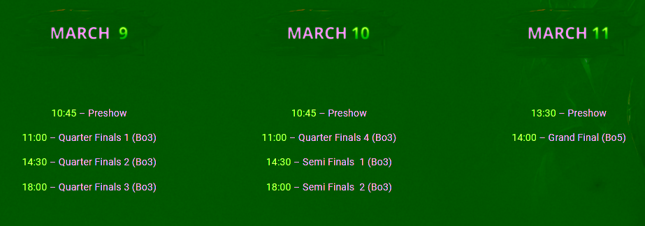 Selama 4 hari pertama, babak grup ini akan terus berlanjut dan akan menyisakan 8 tim terbaik dunia yang akan siap maju kebabak selanjutnya dari The Bucharest Major yang akan dimulai dari tanggal 9 sampai 11 Maret nanti. Seluruh ajang setelah ini akan menggunakan sistem Best of 3, selain laga final yang memang selalu menggunakan sistem Best of 5.