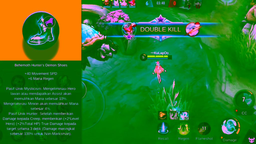 Demon Shoes akan sangat berguna bagi Floryn yang harus mengeluarkan skill secara terus menerus. Kita ketahui bahwa Floryn membutuhkan banyak sekali mana pada awal game untuk memberikan support terhadap teman. Demon Shoes akan memberikan tambahan +40 Movement speed dan +6 mana regen.