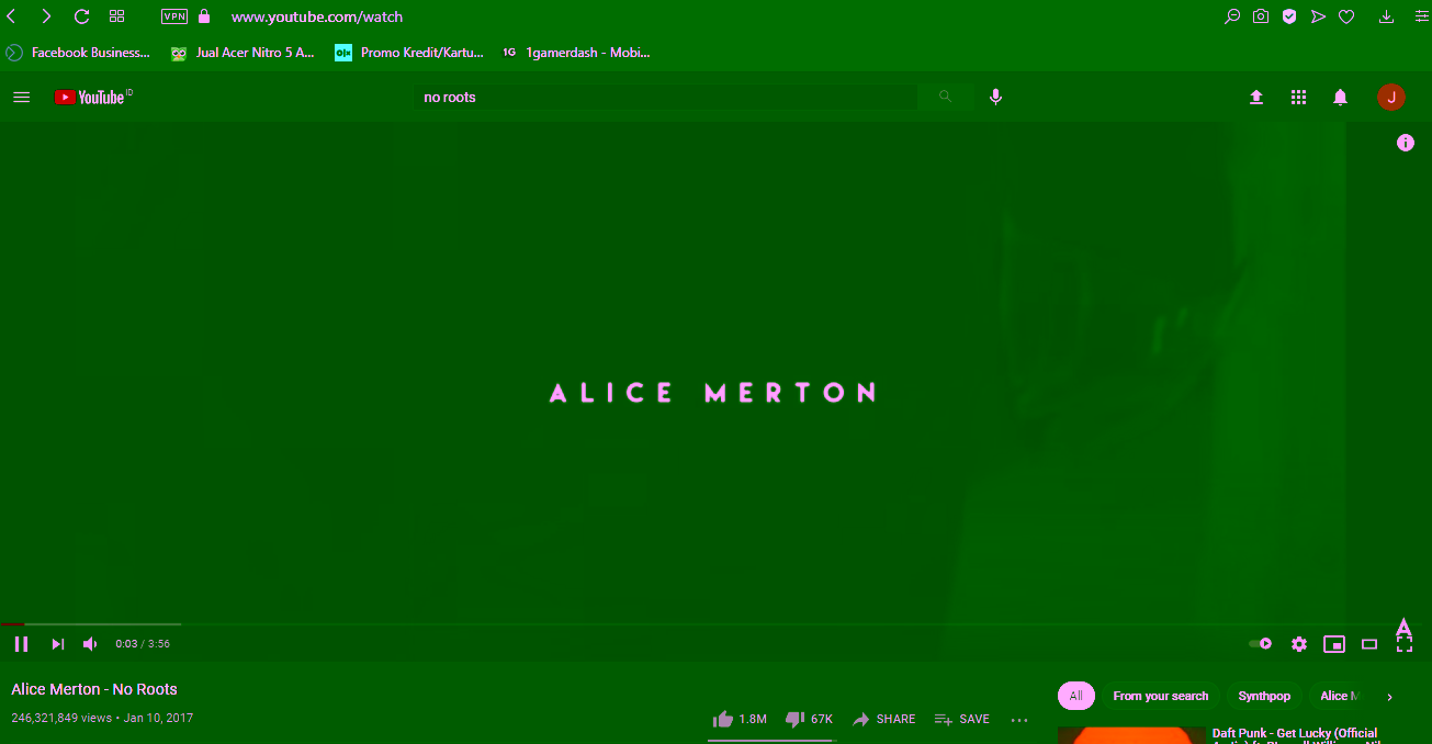 - Pilih lagu youtube yang kalian inginkan (Contoh penulis mendengar lagu Alice Merton – No Roots