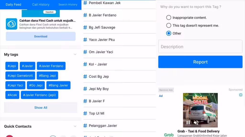 Selain mengaktifkan Mode Pribadi. Ternyata aplikasi ini juga dapat menyembunyikan tag yang dirasa tidak sesuai dengan pemilik nomor HP nya. Berikut adalah cara Menyembunyikan Tag pada aplikasi tersebut: