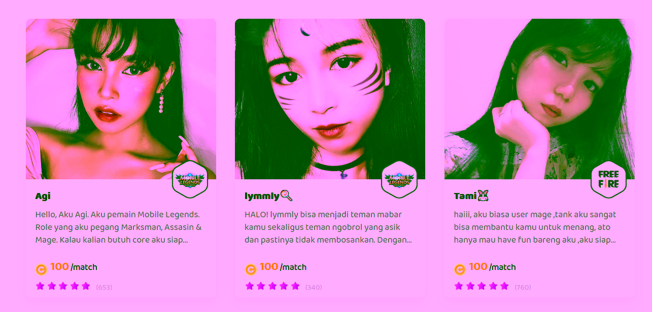 Aplikasi Lita punya sistem cukup begitu menarik dan simpel untuk digunakan. Di dalam aplikasi, tersedia banyak foto profil dari Jasa Teman Mabar yang bisa semua pengguna pilih. Detail informasi mengenai biodata diri, game yang dimainkan beserta dengan demo suara dari mereka bisa kamu jumpai dari sana. Pemain yang tertarik bisa langsung mengajak mabar orang tersebut lewat konfirmasi fitur order yang sudah dijalankan.