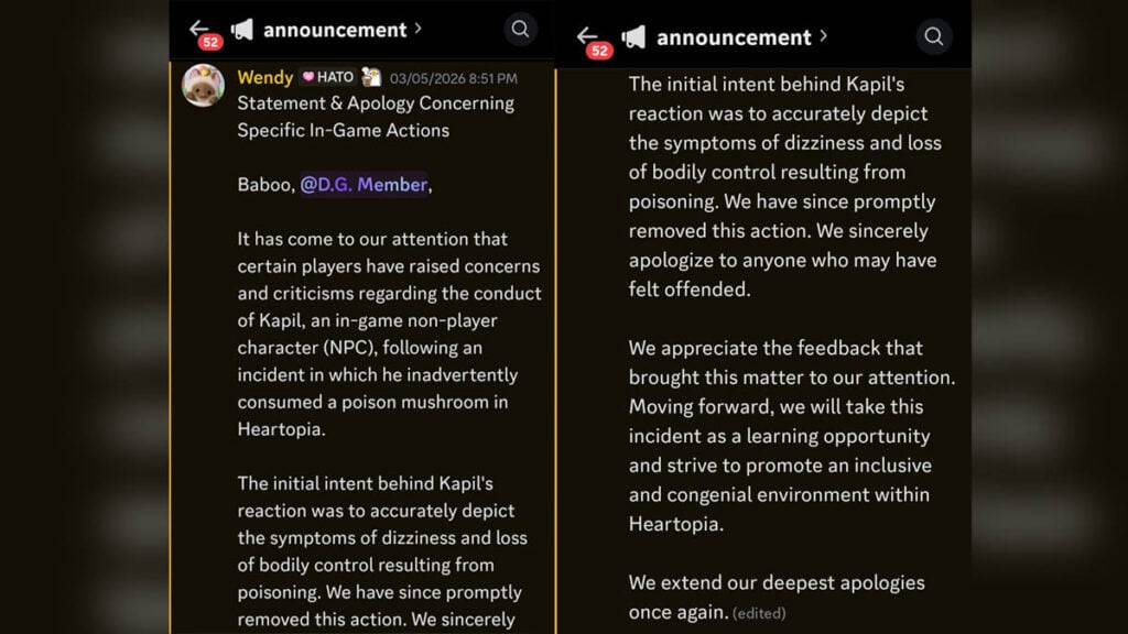 Beberapa laporan dari pemain di media sosial juga menyebutkan bahwa moderator sempat menghapus atau menyembunyikan channel feedback di Discord resmi Heartopia setelah kontroversi animasi Kapil dan permintaan maaf tersebut.