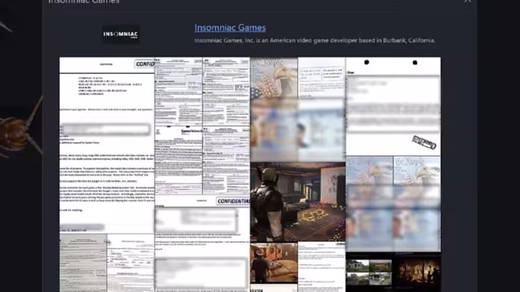 Data-data yang telah bocor ini juga meliputi dokumen paspor karyawan Insomniac, beberapa dokumen mantan karyawan insomniac, beberapa email serta dokumen-dokumen lain yang sudah ditandatangani.