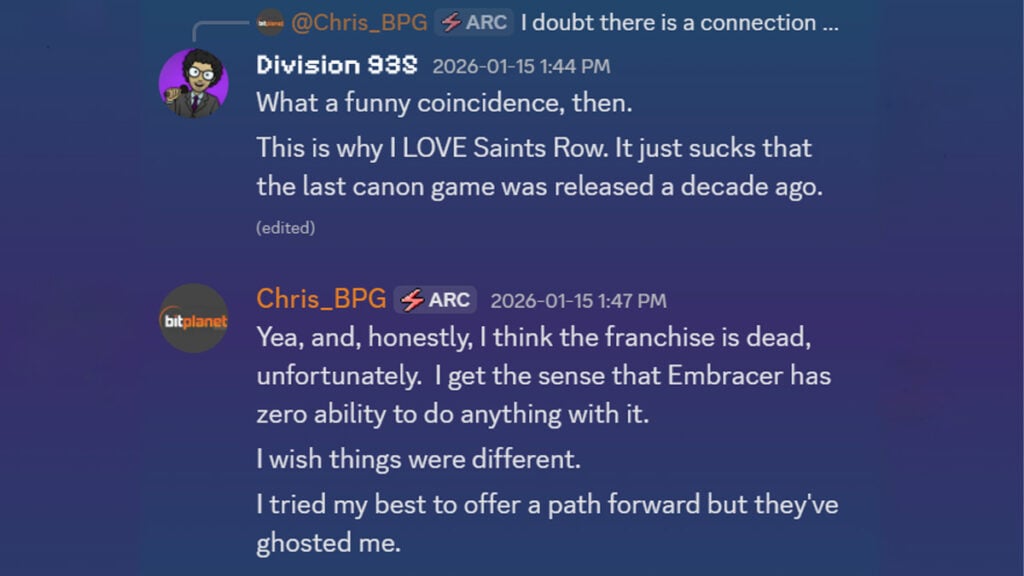 Chris membalas dengan mengiyakan komentar tersebtu dan mengatakan bahwa sayangnya, franchise tersebut kini telah mati. Mengenai alasannya, sepertinya Chris Stockman cukup kecewa dengan embracer.