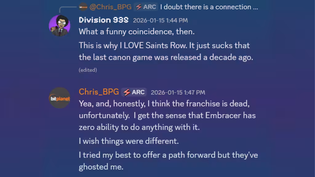 Dilansir dari akun Twitter/X PapaRPG, Christ Stockman berbicara mengenai game tersebut dimana ia merespon chat Discord yang mengatakan bahwa mereka menyukai Saints Row namun game terakhir yang “canon” rilis lebih dari 1 dekade lalu.