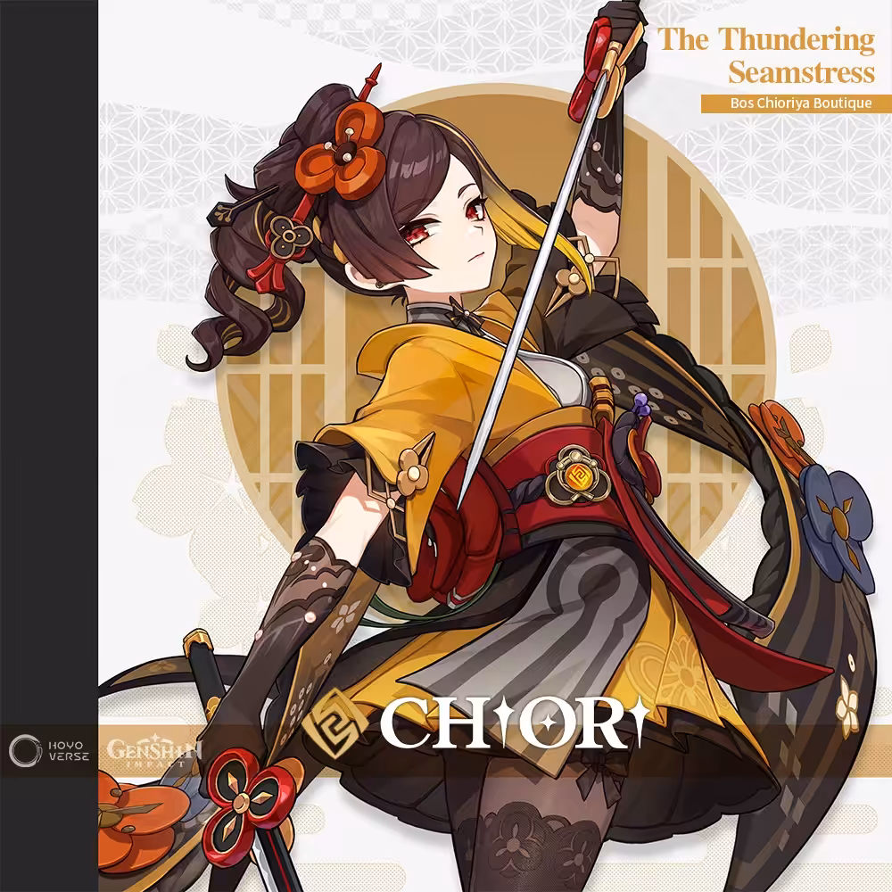 Nama Chiori sebenarnya sudah muncul ke permukaan jauh sebelum kemunculannya pertama kali di event tahunan Fontaine. Dilansir dari pernyataan Kirara, dan si kembar Lyney-Lynette, Chiori adalah seorang desainer asal Inazuma dan juga bos pemilik Chioriya Boutique ternama di Fontaine.