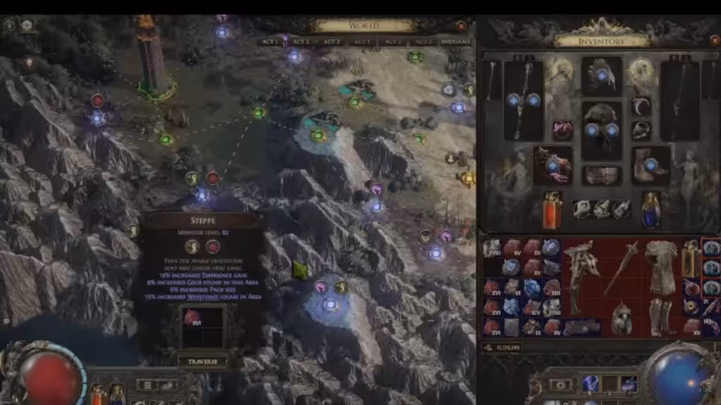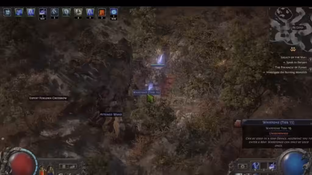 Beberapa item penting juga ia abaikan seperti Chaos Orb dan Exalted Orb dan justru mengambil keystone yang sudah tidak berguna untuk karakter end game yang ia miliki karena item tersebut di highlight oleh game.