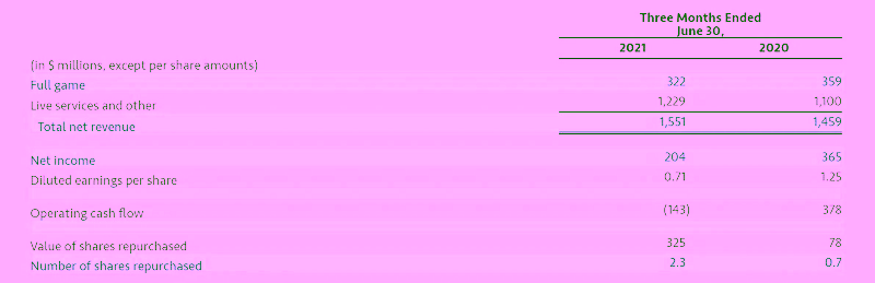 Meskipun pendapatan dari penjualan game EA mengalami penurunan, pendapatan live-servicenya berhasil mengimbangi kerugian yang ada sebesar 13%. Hal ini dikarenakan beragam aspek live-service yang mulai diterapkan oleh EA pada game seperti FIFA dan Apex Legends.