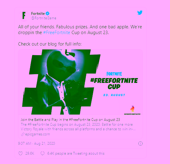 Tidak sampai disitu, sebelumnya Apple sempat menyindir pihak Apple dengan sebuah video yang mirip dengan video lama Apple. Kali ini kembali Fortnite menyindir dengan mengadakan sebuah turnamen. Dengan tagar #FreeFortnite yang akan dilangsungkan pada 23 agustus.