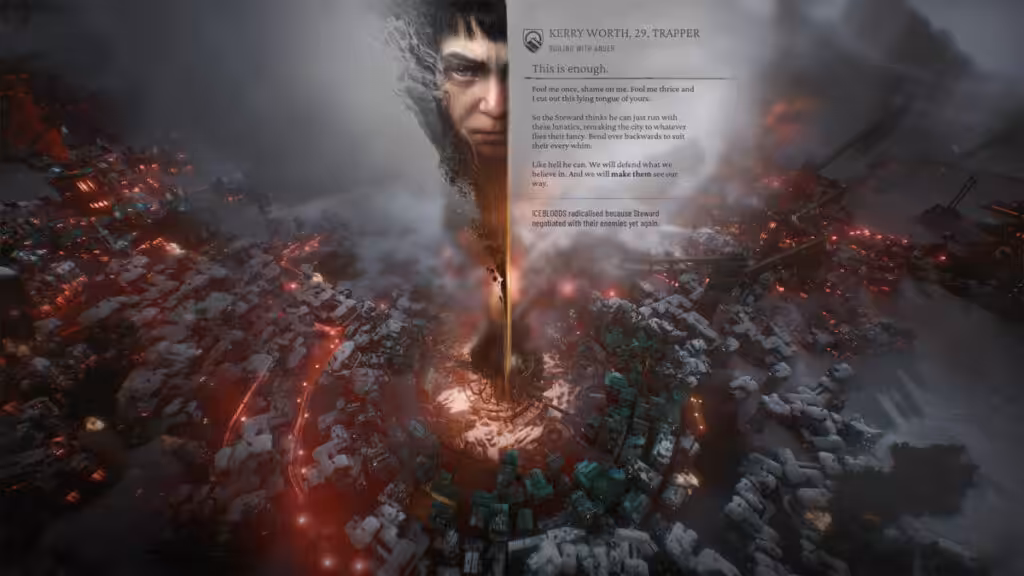 Satu hal yang cukup menarik dalam Frostpunk 2 adalah perubahan tagline dari game pertamanya, “the city must survive” menjadi “the city must not fall“. Dan pada trailer di atas pun diperlihatkan serangkaian mekanisme interaksi dengan warga yang nampaknya akan lebih intensif daripada game sebelumnya. Sehingga agaknya bisa diekspektasikan bahwa elemen sosial dan politik juga akan menjadi ancaman utama dalam sekuelnya ini.