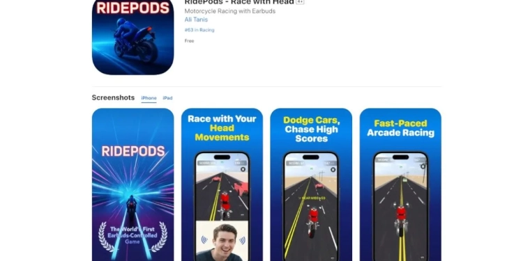 Mungkin ini adalah pertama kalinya sebuah AirPods digunakan untuk mengontrol game di iPhone. Ya, kalian tidak salah baca dan saya tidak salah tulis. Game yang rilis di App Store bernama RidePods ini menggunakan kontrol berbasiskan teknologi Spatial Audio milik AirPods.
