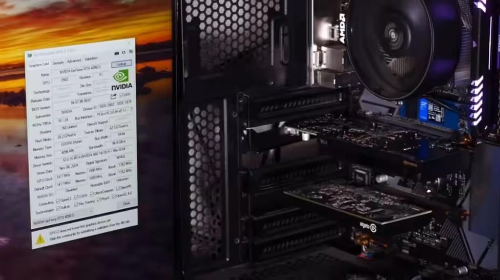 Ketika kartu grafis tersebut dipasang pada komputer yang ia rakit, terlihat notifikasi pada bagian bawah GPU-Z bahwa kartu grafis tersebut sama sekali tidak terdaftar dalam database milik GPU-Z. Tetapi, terlihat bahwa RTX 4010 tersebut membawa VRAM 4GB GDDR6 dan dibekali 64-bit memory bus saja.