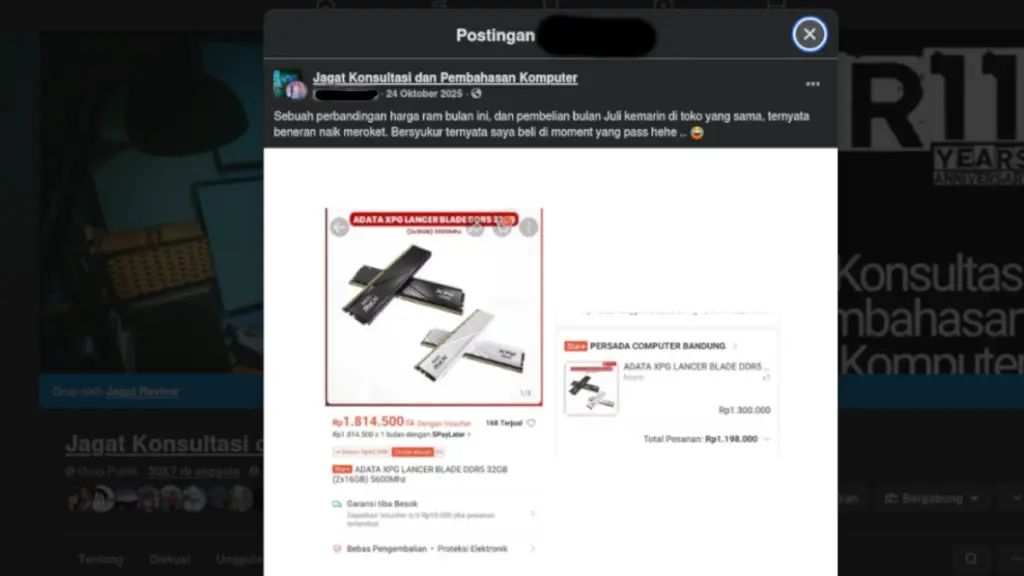 Di Indonesia, komunitas rakit PC sudah mulai berdiskusi soal harga RAM yang membumbung tinggi sejak November 2025. Banyak yang merasa bahwa harga RAM DDR5 untuk rakit PC melonjak jauh dari harga tahun sebelumnya dan menyebabkan pilihan upgrade jadi lebih berat.