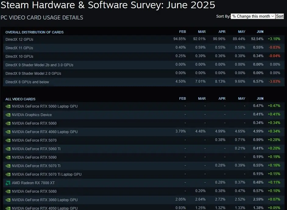 Sebagaimana yang ditampilkan pada laman survei yang rutin dilakukan Valve pada kategori “%change this month,” terlihat adanya beberapa komponen baru yang langsung menjadi sorotan pada survei tersebut.