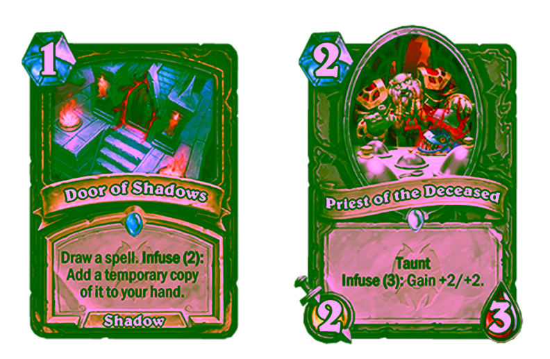 135 Kartu ini merupakan kartu baru yang hadir dengan jenis serta keyword baru. Keyword yang akan hadir dalam ekspansi adalah Infuse. Keyword ini memberikan efek dimana jika ada monster yang mati, maka kartu ini akan memberikan efek tambahan yang kuat.