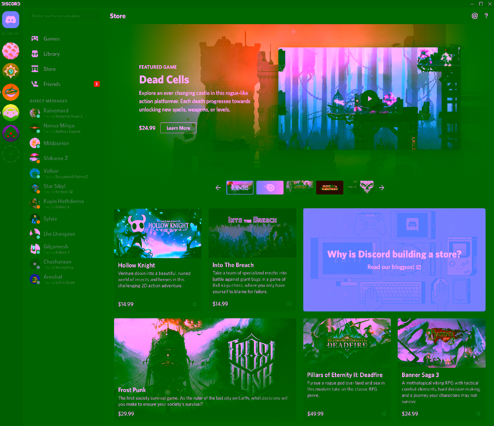 Merasa tersaingi, Discord segera “membalas” Steam dengan luncurkan online store miliknya. Berbeda dengan Steam yang mewajibkanmu untuk membeli gamenya, Discord akan berikan game gratis bagi kamu yang berlangganan servis premium Nitro miliknya. Mereka juga akan berikan fitur pembelian individu layaknya online store terbesar milik Valve tersebut.