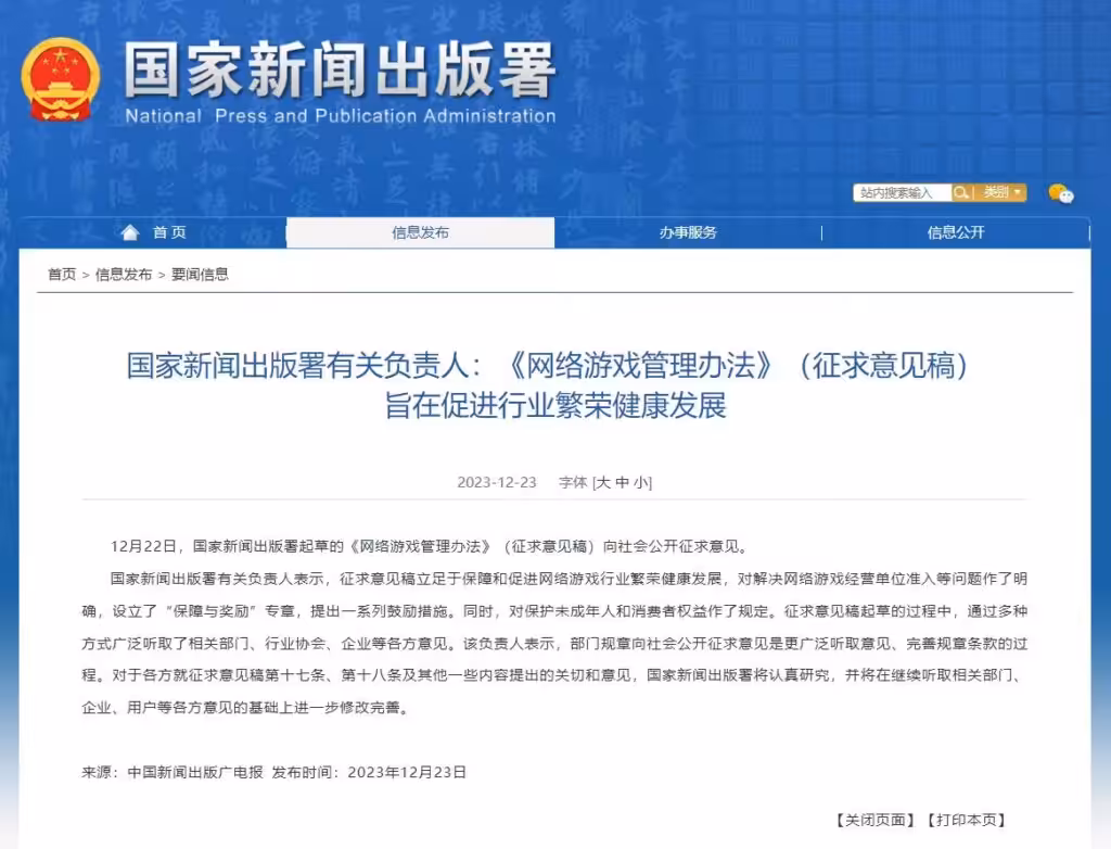 Berdasarkan pernyataan dari pihak penanggung jawab dari National Press and Publication Administration mengatakan draft kebijakan tersebut dibuat didasarkan melindungi dan mempromosikan kemakmuran atas perkembangan industri video game online.