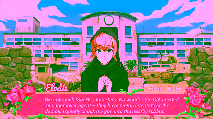 Ya, beliau akhirnya mencoba untuk menciptakan suatu game parodi yang melibatkan pemerintah Amerika dengan salah satu kelompok teroris yang saat ini masih ramai-ramainya diberitakan di banyak media-media internasional. Dengan judul The Super Patriotic Dating Simulator, kamu akan berperan sebagai seorang agen CIA wanita bernama Elodie yang ditugaskan untuk menginfiltrasi markas IS*S.