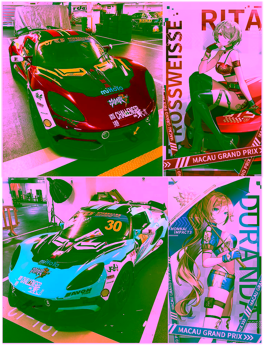 Pada Macau Grand Prix yang ke-67 ini, Tim Z-Challenger PRP mengerahkan dua mobil utama mereka — Lotus Elise GTS yang secara khusus didandani sesuai dengan gaya dan estetika dari dua karakter populer Honkai Impact 3rd, yakni Rita Rossweisse dan Durandal. Transformasi terhadap kedua mobil tersebut seolah-olah menjadikannya chariot atau kereta perang bagi kedua Valkyrie.