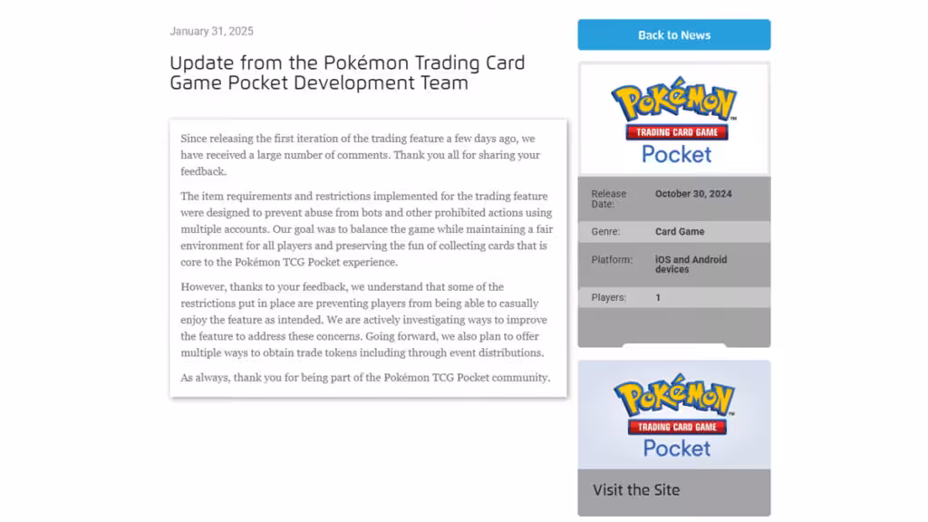 Kartu Pokemon TCG Pocket – Pokemon TCG Pocket kini telah memiliki fitur Trading dimana para pemain dapat bertukar kartu. Fitur ini tentunya bertujuan agar para pemain bisa mengoleksi kartu-kartu yang mereka inginkan.