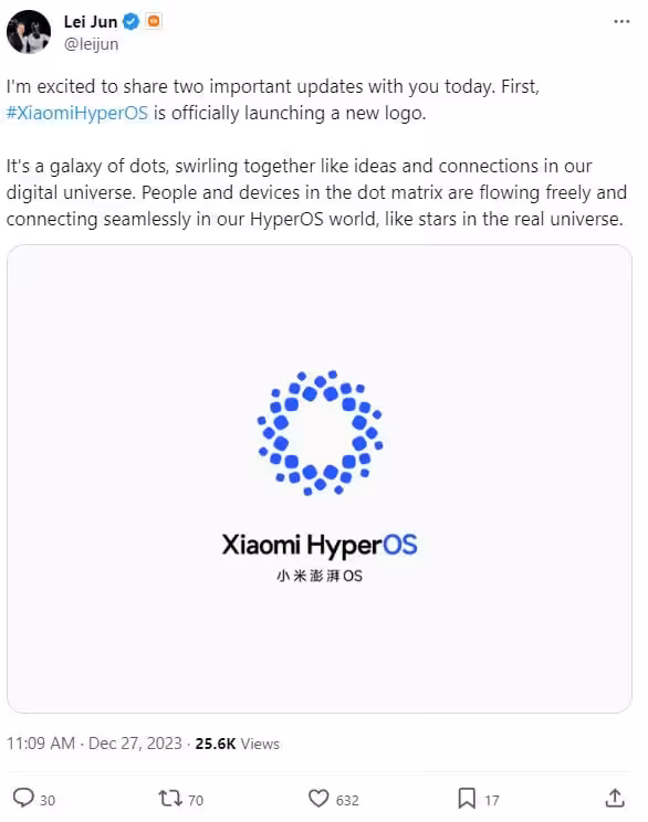 Informasi menarik terkait logo Xiaomi HyperOS ini kami temukan lalui cuitan CEO dan Founder Xiaomi, Lei Jun di Twitter X. Di mana dalam cuitannya belum lama ini, ia mempersembahkan logo terbaru dari sistem operasi yang konon akan gantikan MIUI.