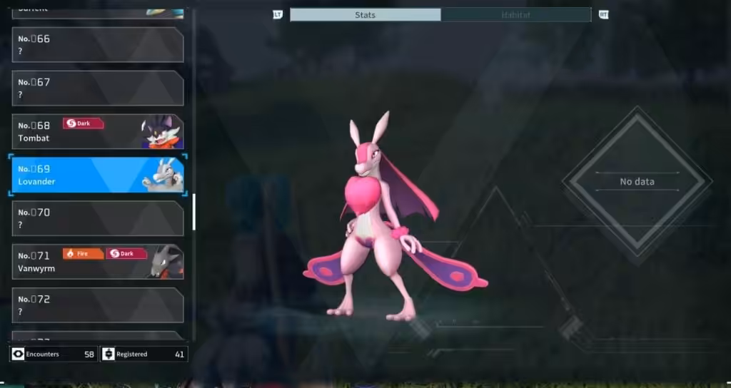 Yang paling parah adalah informasi dari database di dalam game. Berdasarkan informasi pada Paldeck Entry, Lovander sedang mencari ‘cinta’ pada malam hari mengincar targetnya. Pada awalnya monster ini diketahui hanya tertarik pada monster Pals lain, namun dalam belakangan Lovander juga mengincar manusia yang menjadi incarannya.