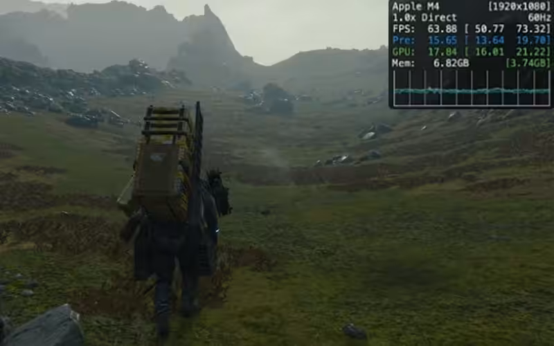 Chipset Mac Mini M4 yang menawarkan 10 core dan 10 GPU core tersebut terlihat mampu menjalankan game besutan Hideo Kojima tanpa masalah. Hal tersebut dibuktikan dengan stabilnya FPS di kisaran 60-75an, yang lebih dari cukup untuk menikmati gameplay serta visual secara bersamaan.