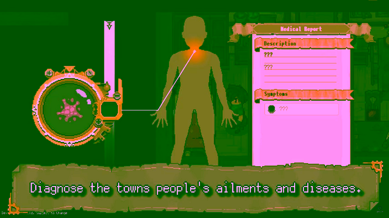 Dengan kehadiranmu dalam kota tersebut, para penduduk akan bergantung kepadamu di saat mereka sakit. Kamu harus mendiagnosa gejala yang dialami oleh penduduk yang sakit tersebut dan menemukan obat untuk menyembuhkan penyakit mereka.