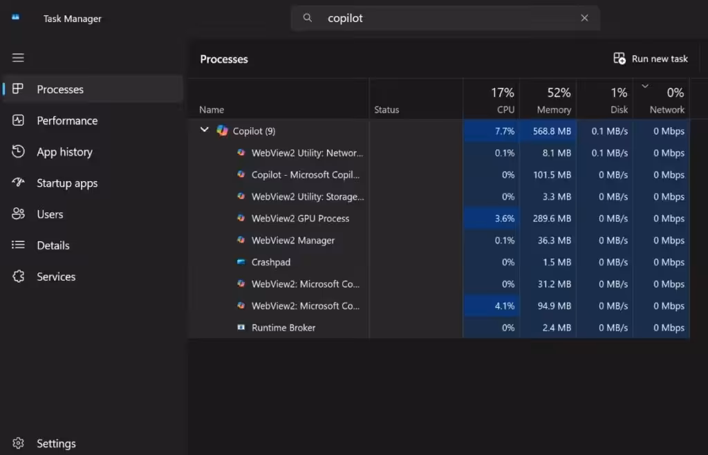 Meski sekilas menjanjikan AI yang berjalan secara terintegrasi, namun ternyata fitur tersebut masih harus berjalan dengan memanfaatkan WebView untuk menjalankan bermacam fungsi yang ditawarkan. Alhasil, meski memang Microsoft Copilot terintegrasi, tetapi justru membuat masalah baru, yakni konsumsi RAM yang meningkat.