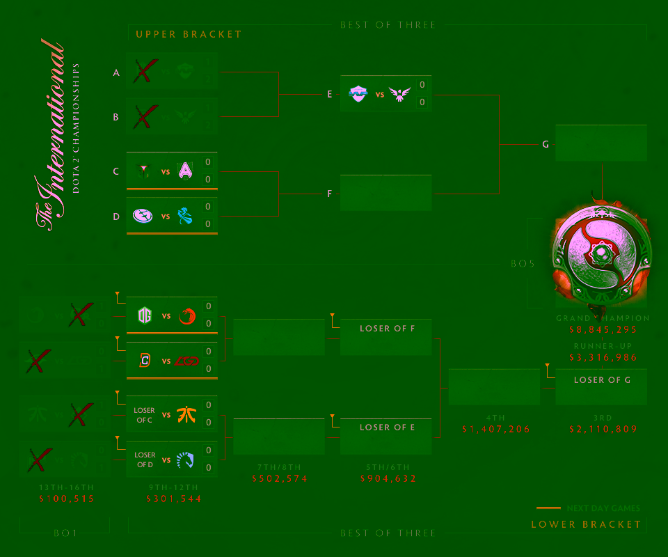 The International 6 masih akan terus berlanjut, berikut adalah Bracket untuk Day #2 dari The International 6 :