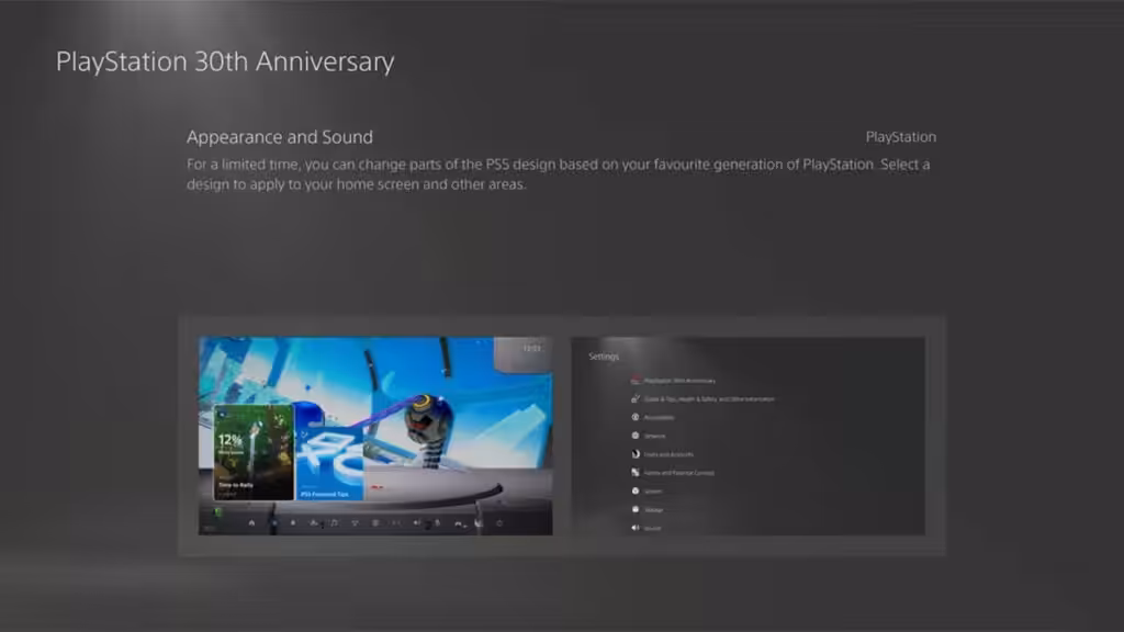 Dan untuk memeriahkan perayaan ini, Sony Interactive Entertainment memberikan beberapa desain dari generasi-generasi PlayStation sebelumnya. Untuk para pengguna yang tidak tertarik juga masih tetap dapat mengganti opsi menjadi desain standar PS5 jika diinginkan.