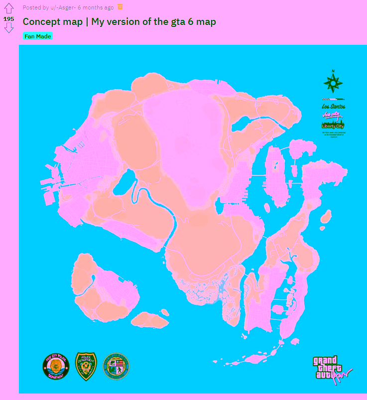 Para penggemar melalui akun Reddit membuat beberapa konsep peta GTA 6. Rata-rata map tersebut disusun berdasarkan rumor yang beredar. Mereka membuat map yang menghubungkan Liberty City dan Vice City, kemudian menambahkan kota lain seperti Los Santos dan wilayah San Andreas. Meskipun peta tersebut terlihat tidak masuk akal, namun hal tersebut menarik perhatian penggemar yang lain.