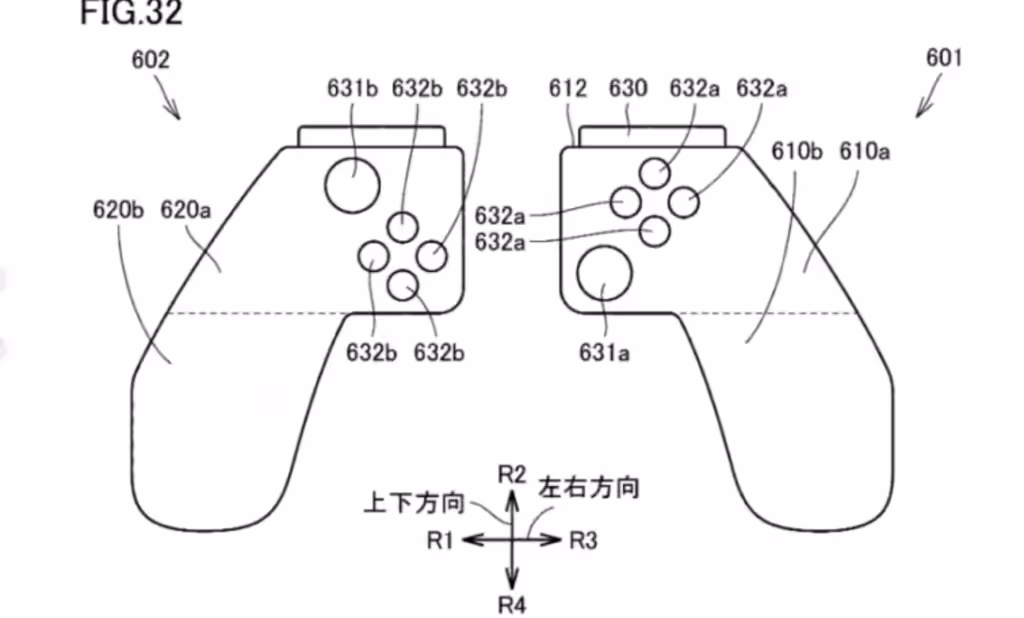 Tidak cuma itu saja, ada paten yang perlihatkan kontroler baru dengan bentuk yang lumayan unik pula. Dari paten ini terlihat kalau kontroler baru ini mirip Pro controller yang terpisah dua.