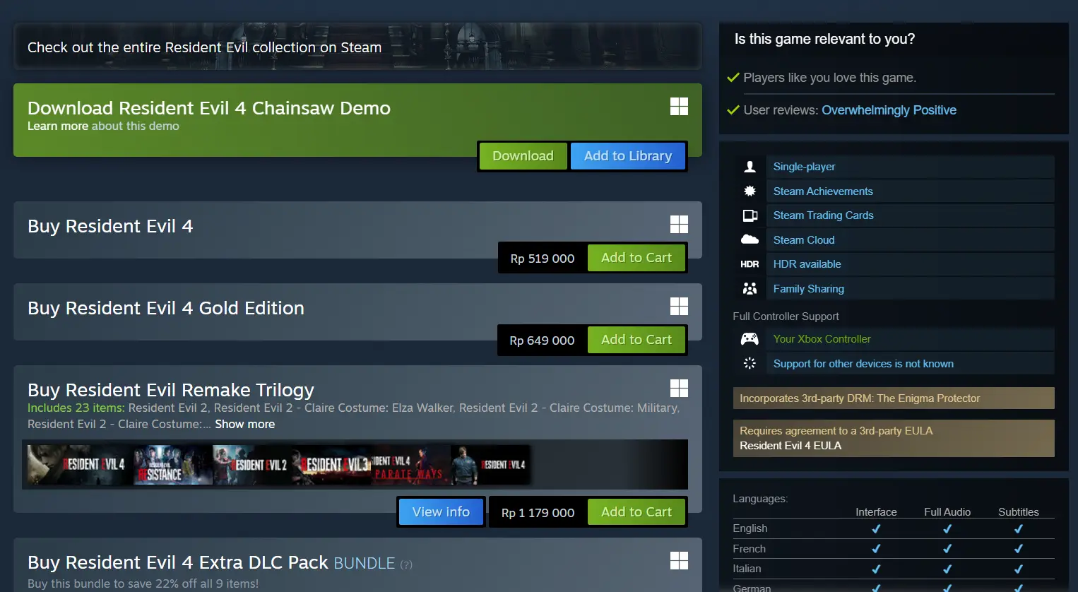 Perlu kalian ketahui, pada awalnya RE4 Remake di PC memang sudah lama memiliki sistem keamanan DRM yang menggunakana program dari Denuvo. Sistem tersebut belum pernah dilepas oleh Capcom sampai sekarang. Dan kini sistem DRM RE4 Remake telah berubah dari awalnya pakai program Denuvo yang kini memakai program dari The Enigma Protector.