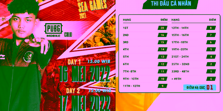 PUBG Mobile Solo Mode di SEA Games 2021 ini akan berlangsung selama 2 hari. Jadi, hanya akan terdapat 2 kali pertandingan saja.