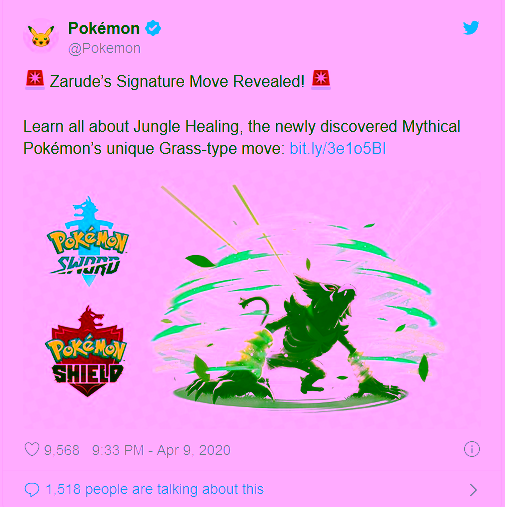 The Pokemon Company telah berbagi beberapa detail baru tentang Zarude, Pokemon Mythical terbaru yang datang ke Sword and Shield. Sementara banyak tentang Pokemon masih diselimuti misteri, kita sekarang tahu bahwa ia mampu mempelajari move baru eksklusif atau signature move yang disebut Jungle Healing.
