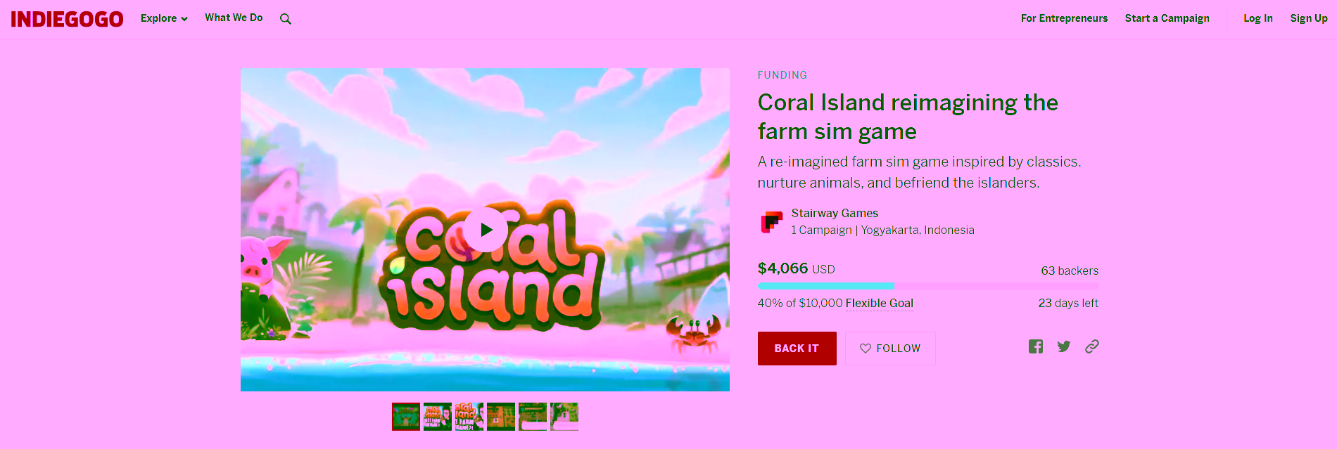 Coral Island's page on Indiegogo is not officially made by us. We're contacting Indiegogo to have the page taken down.
